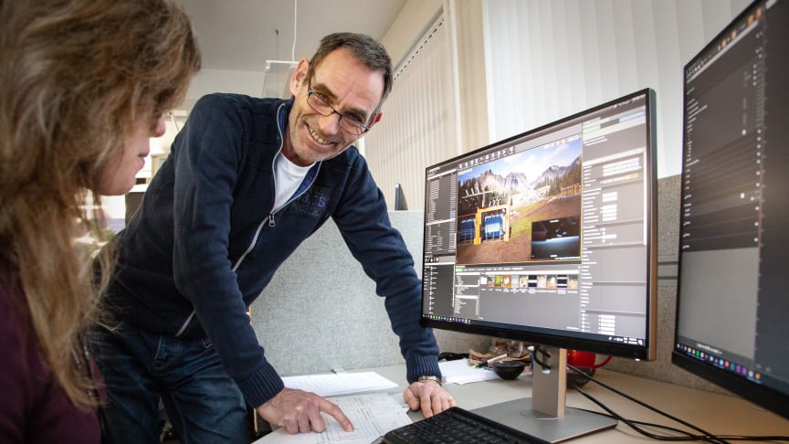 Produktansvarlig Steinar Nilsen gleder seg over å se 3D spillutvikler Amanda Westrum van Tils levendegjøring av arbeidssituasjoner han kjenner seg igjen i. Foto: Trainor AS
