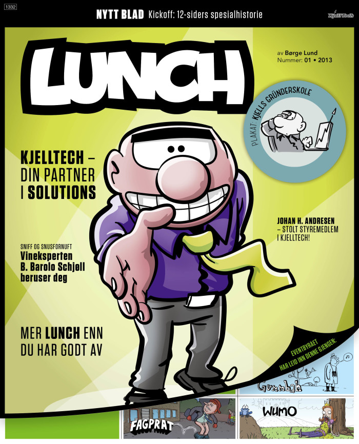 Det er KjellTech som st?r bak redaksjonsjobben og utgivelsen av LUNCH-bladet. KjellTech Agency vil gjerne legge til at LUNCH n? har en ekstrem eksponeringsgrad i over 70 publikasjoner fordelt p? 8 land. I Norge benchmarker redaksjonen sin grad av m?loppn?else ved ?tte innovative high end-utgivelser i ?ret.