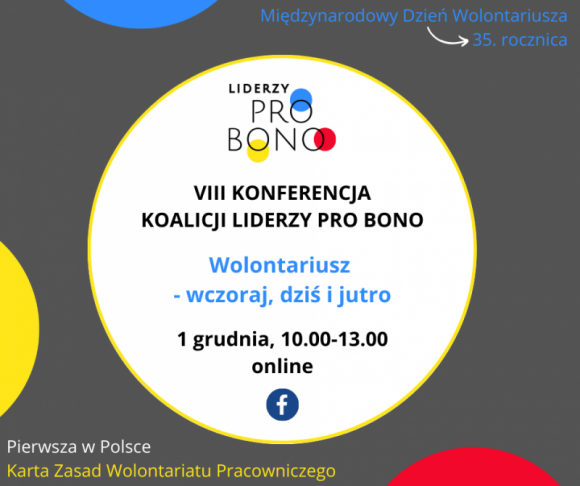 Zgromadzenie Narodowe ONZ, 35 lat temu, ustanowiło Międzynarodowy Dzień Wolontariusza,obchodzony co roku 5 grudnia. Z okazji tej rocznicy, Koalicja Liderzy Pro Bono ogłosi pierwszą w Polsce Kartę Zasad Wolontariatu Pracowniczego. Nastąpi to podczas VIII konferencji Koalicji Liderzy Pro Bono, 1 grudnia br. Wydarzenie będzie można zobaczyć online https://www.facebook.com/LiderzyProBono
