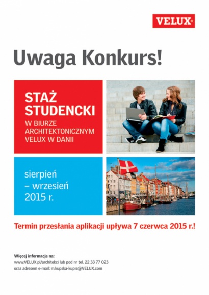 Szczegółowe informacje dotyczące zasad ubiegania się o staż znajdują się na stronie: www.velux.pl/profesjonalisci/architekci/studenci